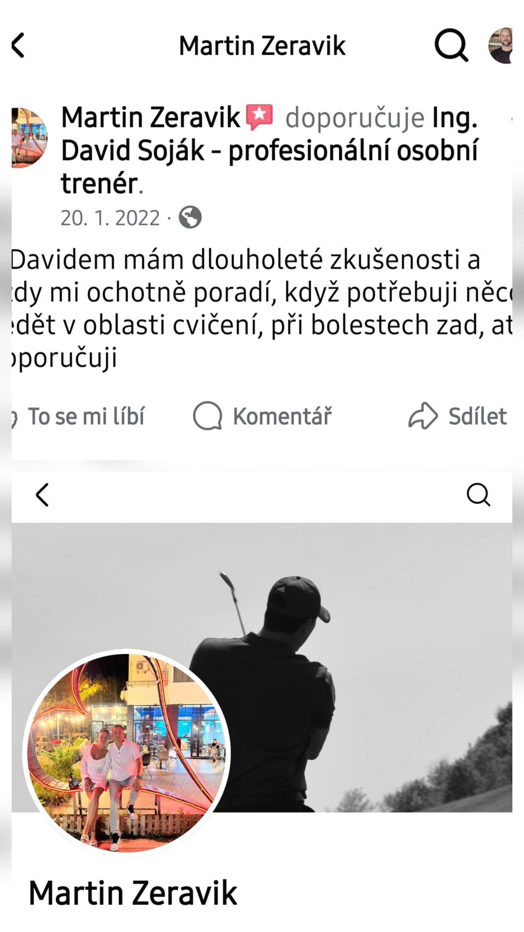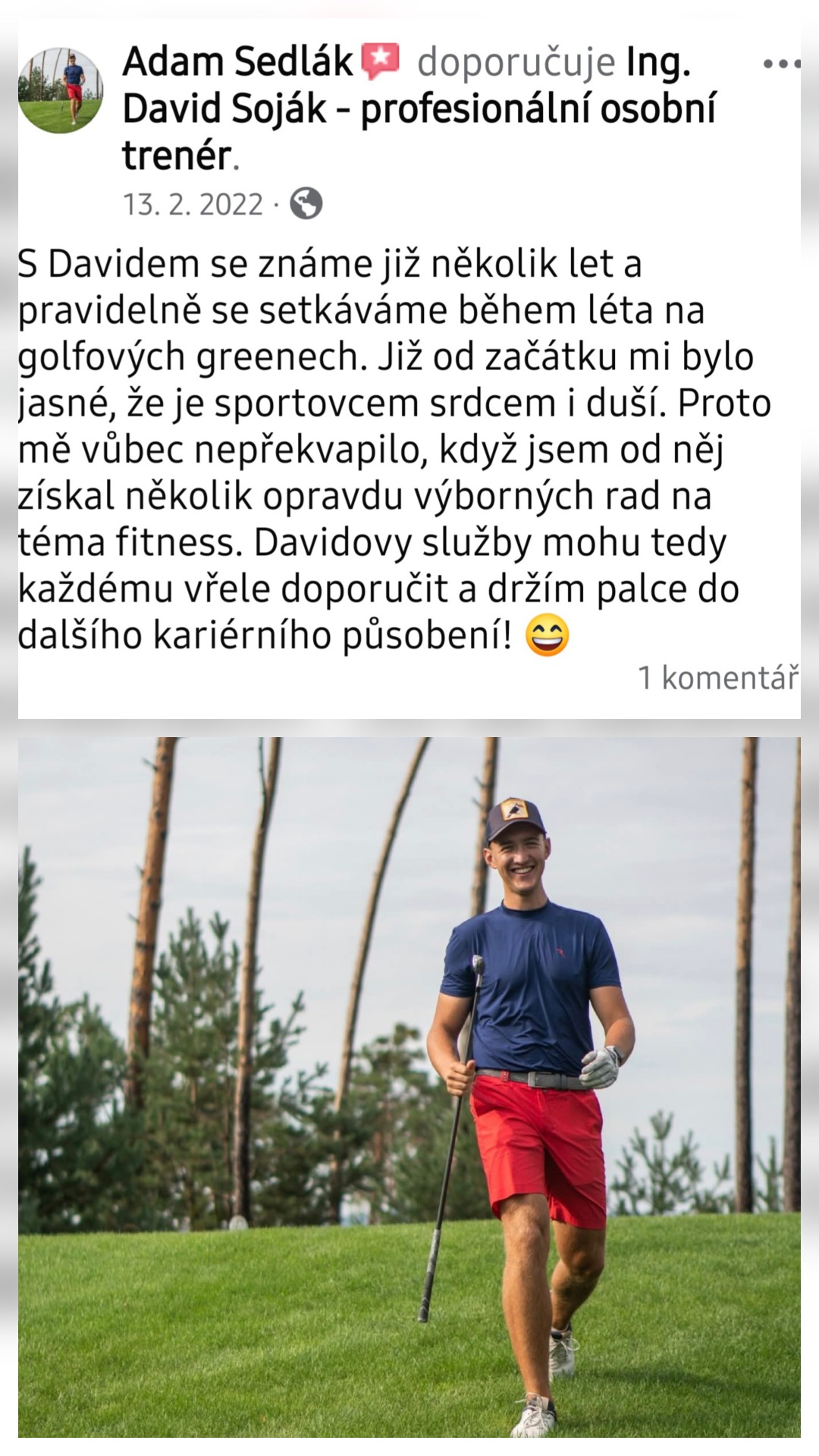 S Davidem se známe již několik let a pravidelně se setkáváme během léta na golfových greenech. Již od začátku mi bylo jasné, že je sportovcem srdcem i duší. Proto mě vůbec nepřekvapilo, když jsem od něj získal několik opravdu výborných rad na téma fitness. Davidovy služby mohu tedy každému vřele doporučit a držím palce do dalšího kariérního působení! 😄