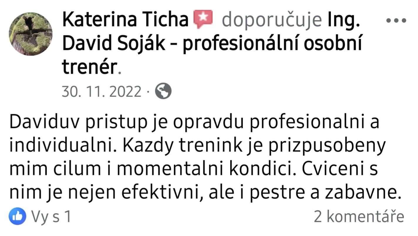 Tak já jdu s kůží na trh 😁 Rozhodla jsem se zlepšit fyzickou kondici, objevila trenéra přímo v Čimicích a po táboře to šla zkusit. David Soják je profík a moc příjemný, komunikativní a naslouchající. A to je pro mě důležitý 🙂 🤩 Dneska jsem byla už po páté a nějaké výsledky už na sobě vidím 🥳