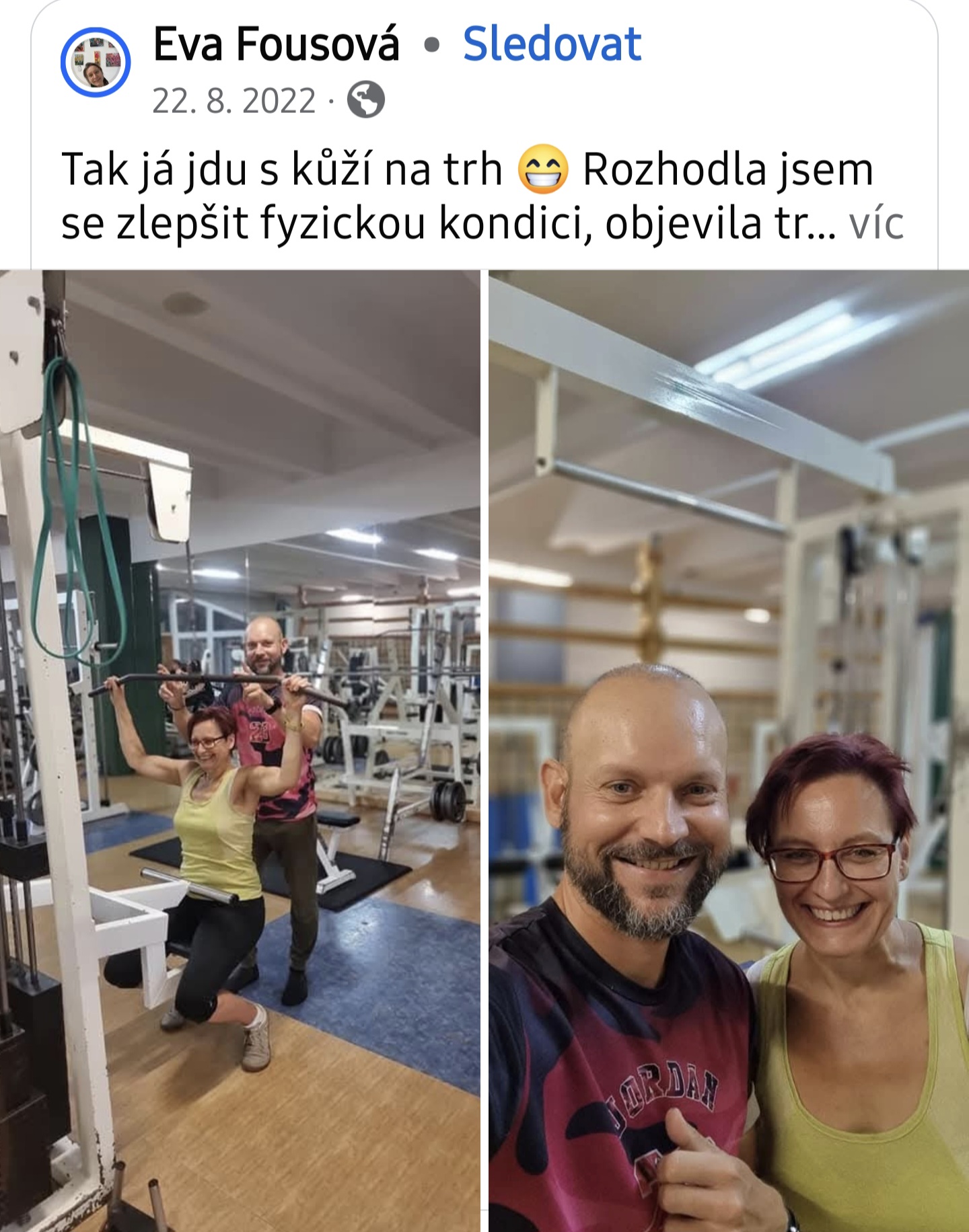 Chodím 2x týdně, mám trénink na míru a jsem fakt ráda, že mám trenéra. Jednak mě učí, jak správně cvičit, ale dokáže mě i vyhecovat a podpořit. Dneska jsem zvedala nějakou obrovskou ty-činku 😜